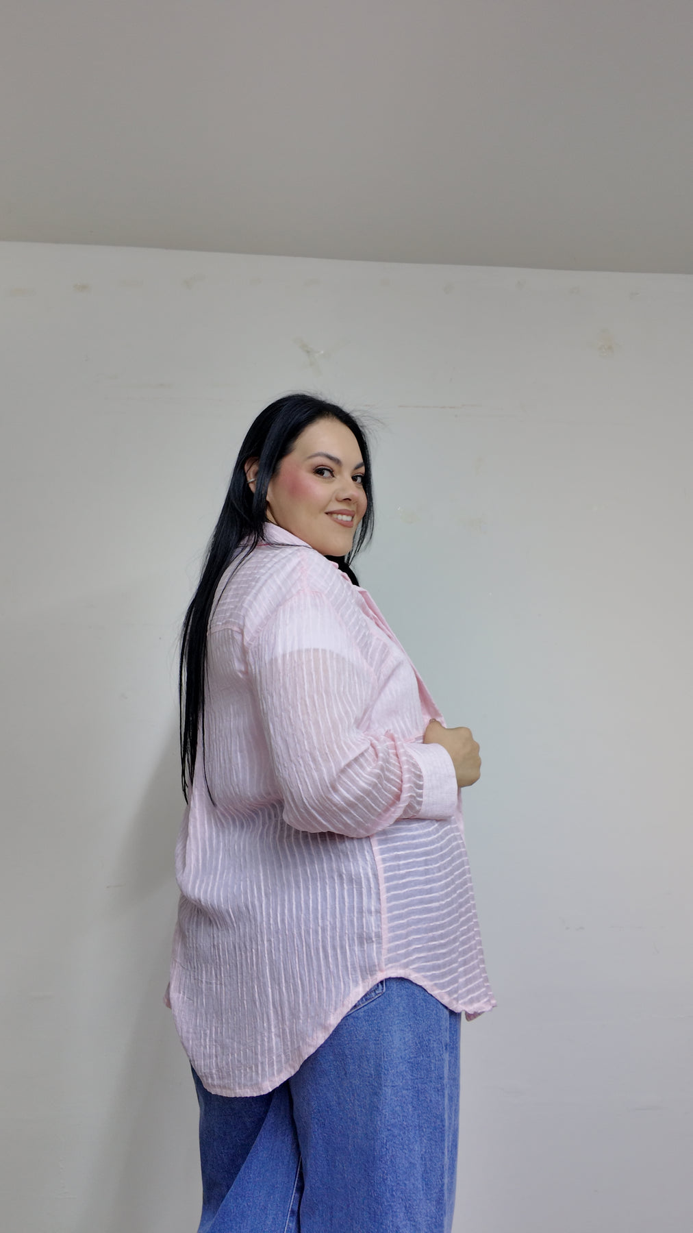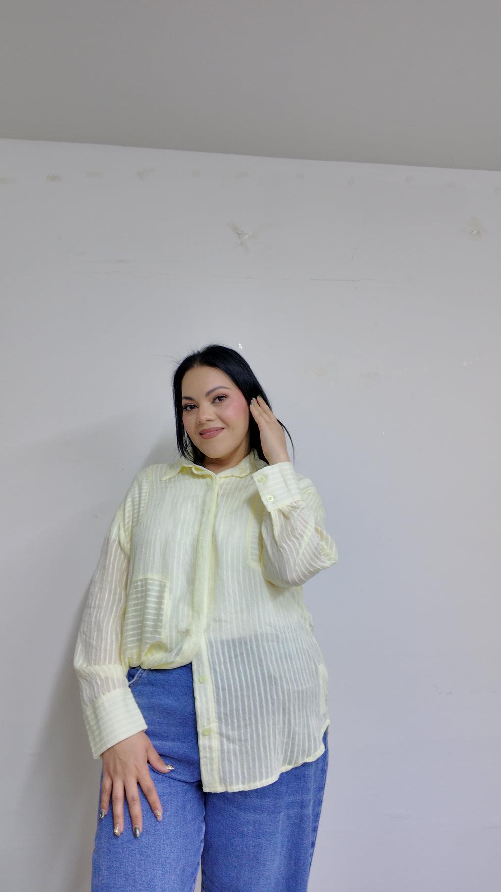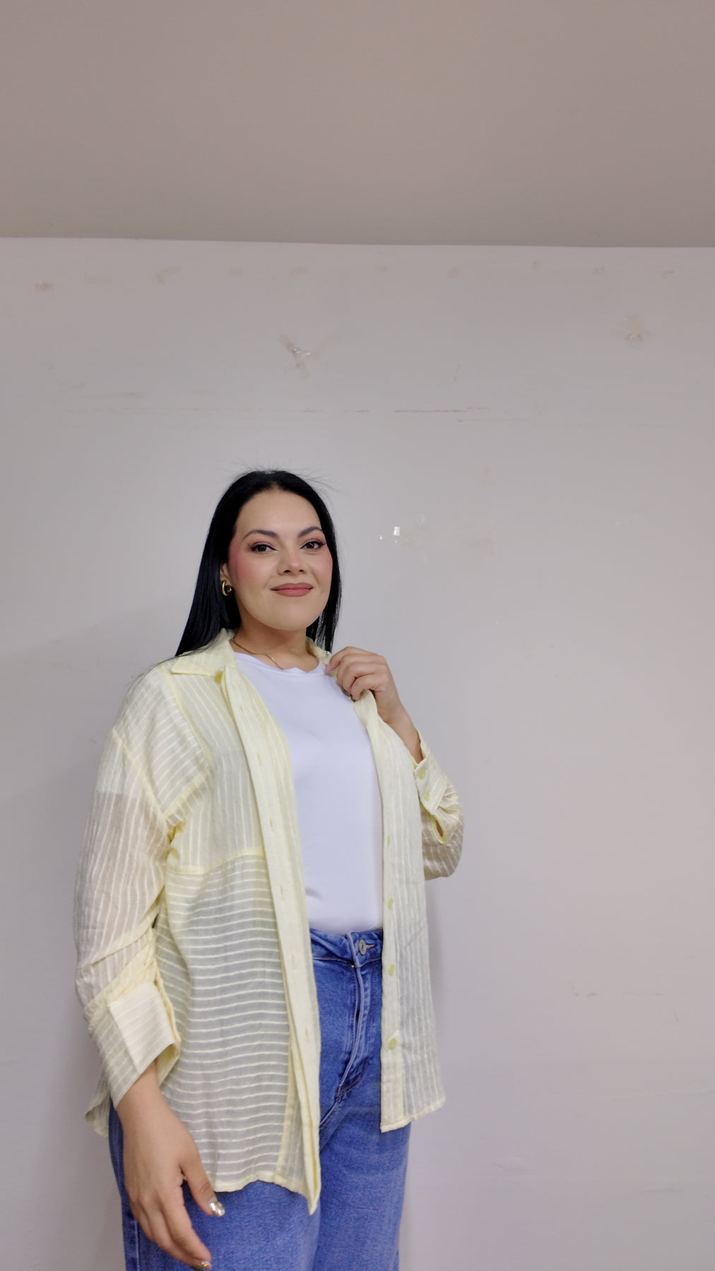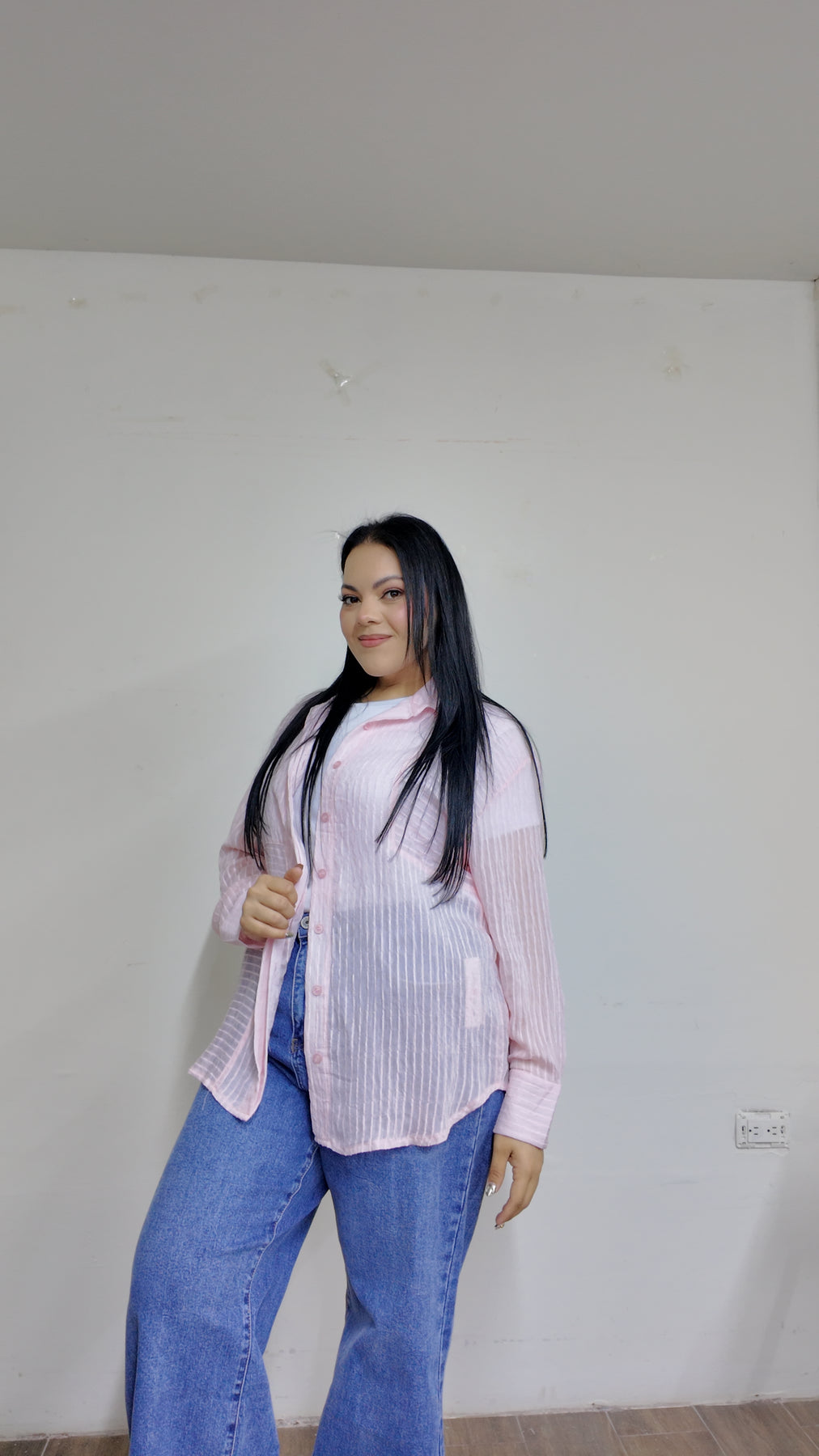 Blusa manga larga TIPO CAMISERA con cuello mao clasico y botones al frente ademas de diseño ligeramente de rayas. Buenísima opción usarse en compañía de unos SÚPER JEANS,ve a nuestro apartado deJEANSy ELIGE TUS FAVORITOS.