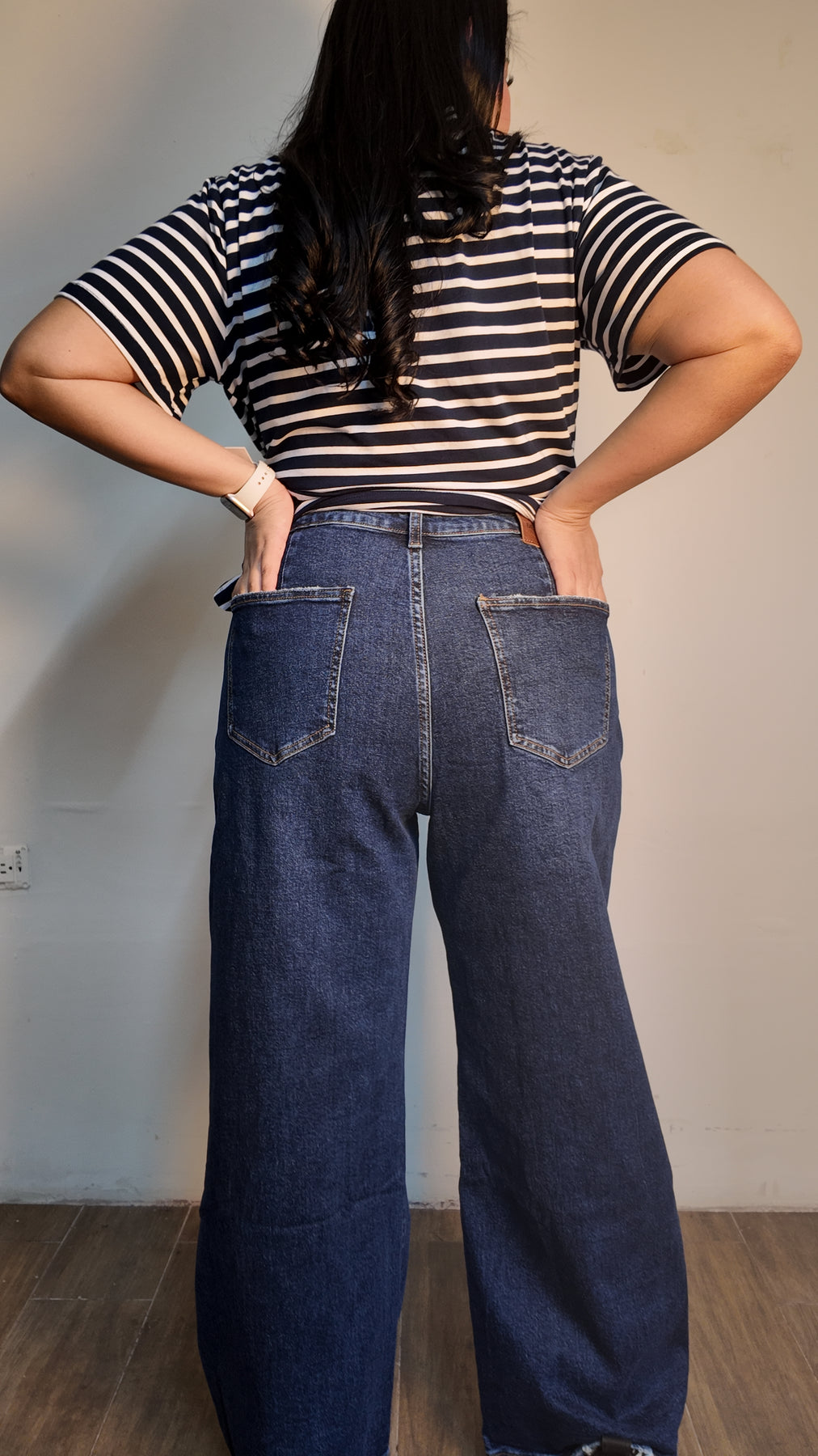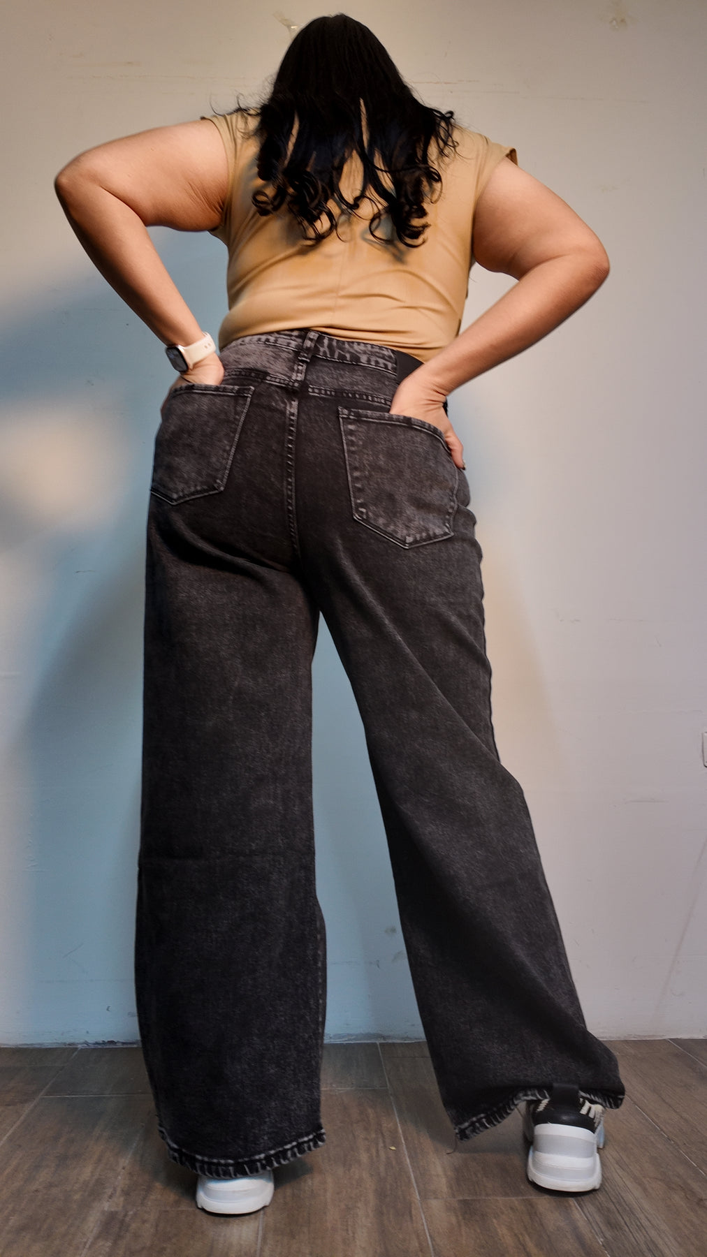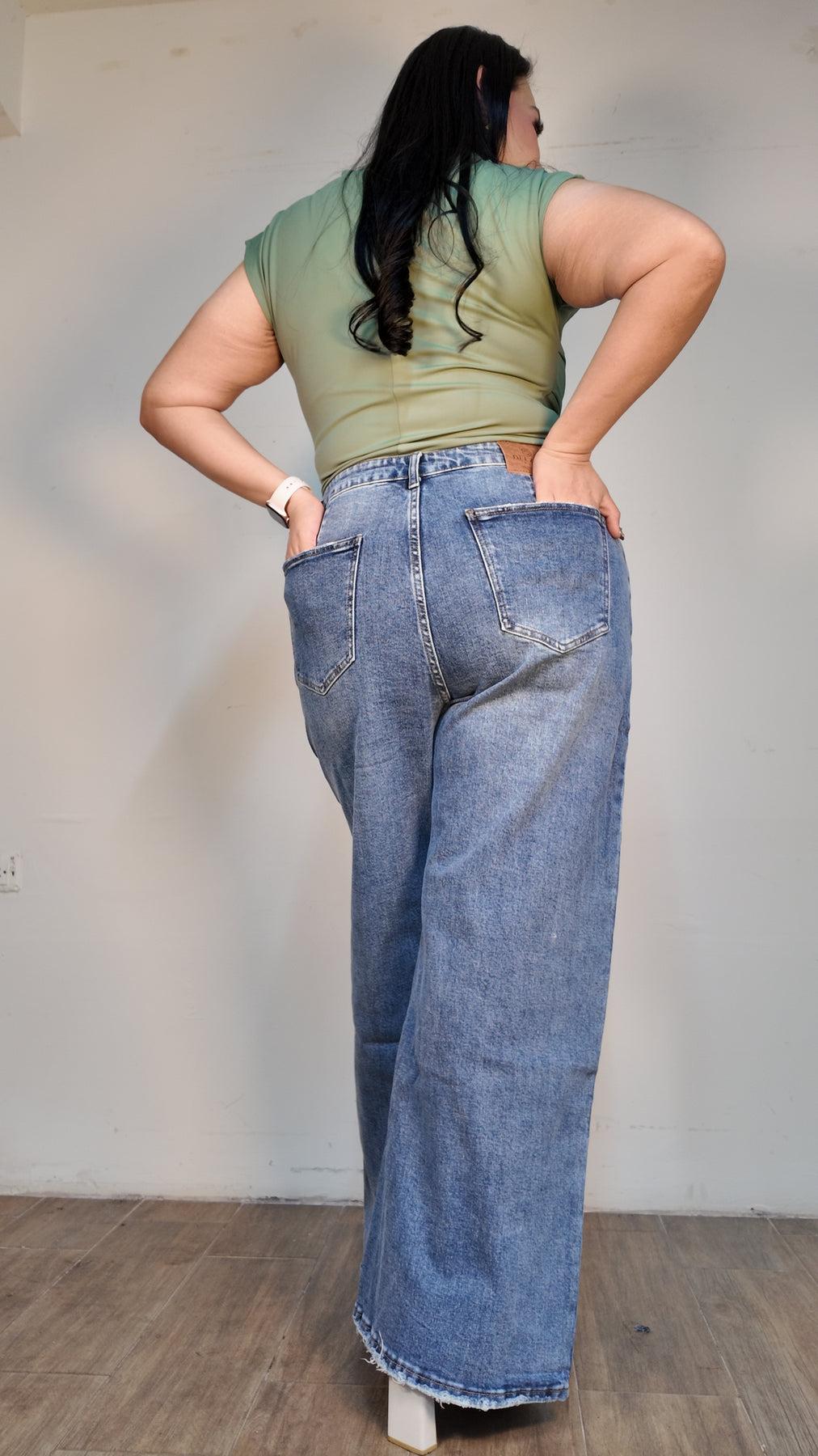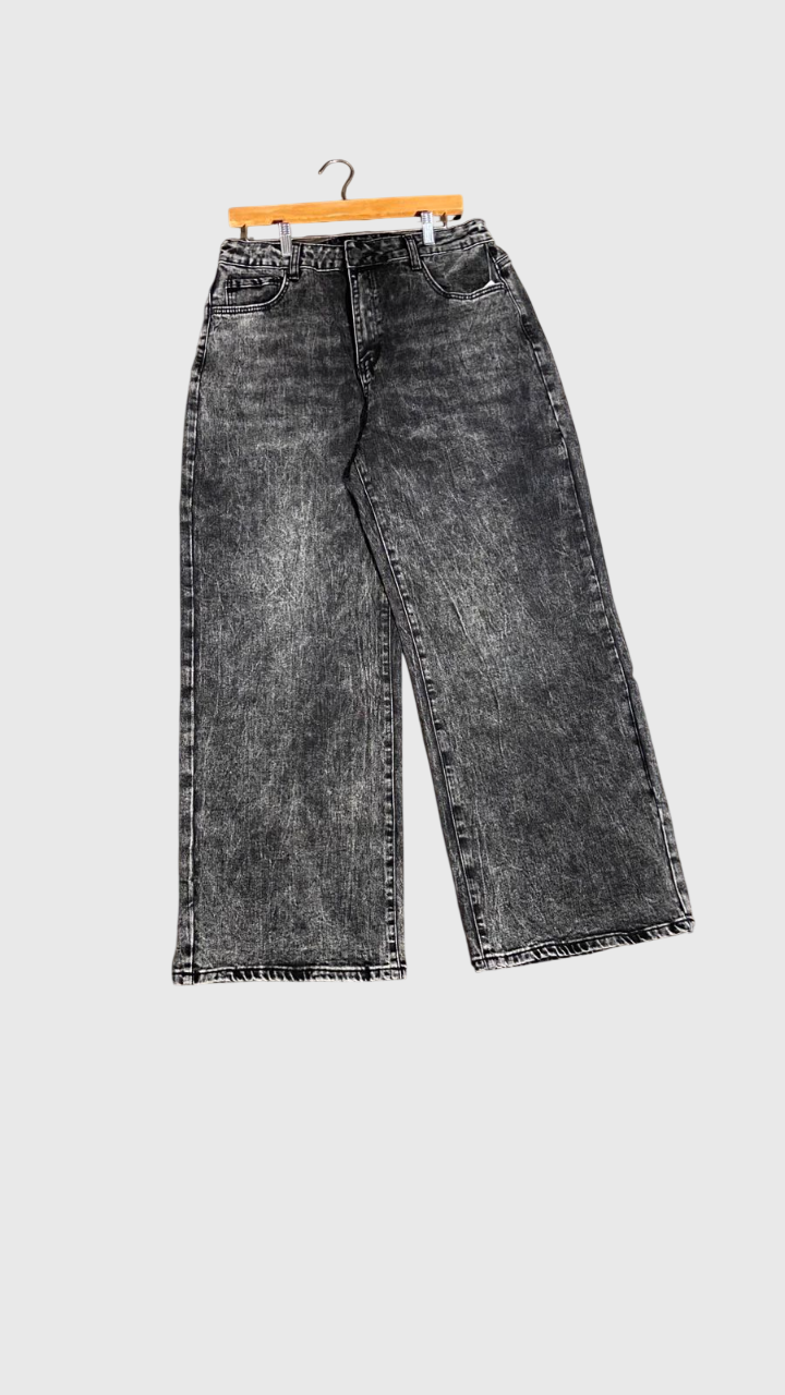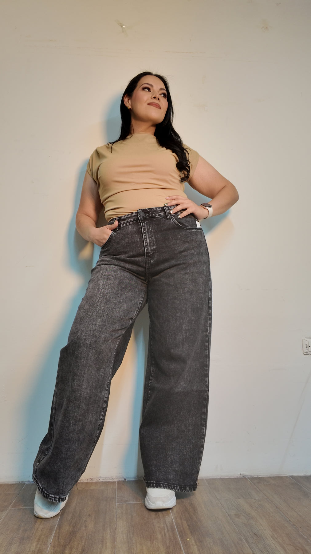 Jeans corte wide con diseño con efecto deslavado corte wide modelo hasta los tobillos, estilo en con nivel de stretch alto. Prenda ideal para lucir un outfit SÚPER COOL.