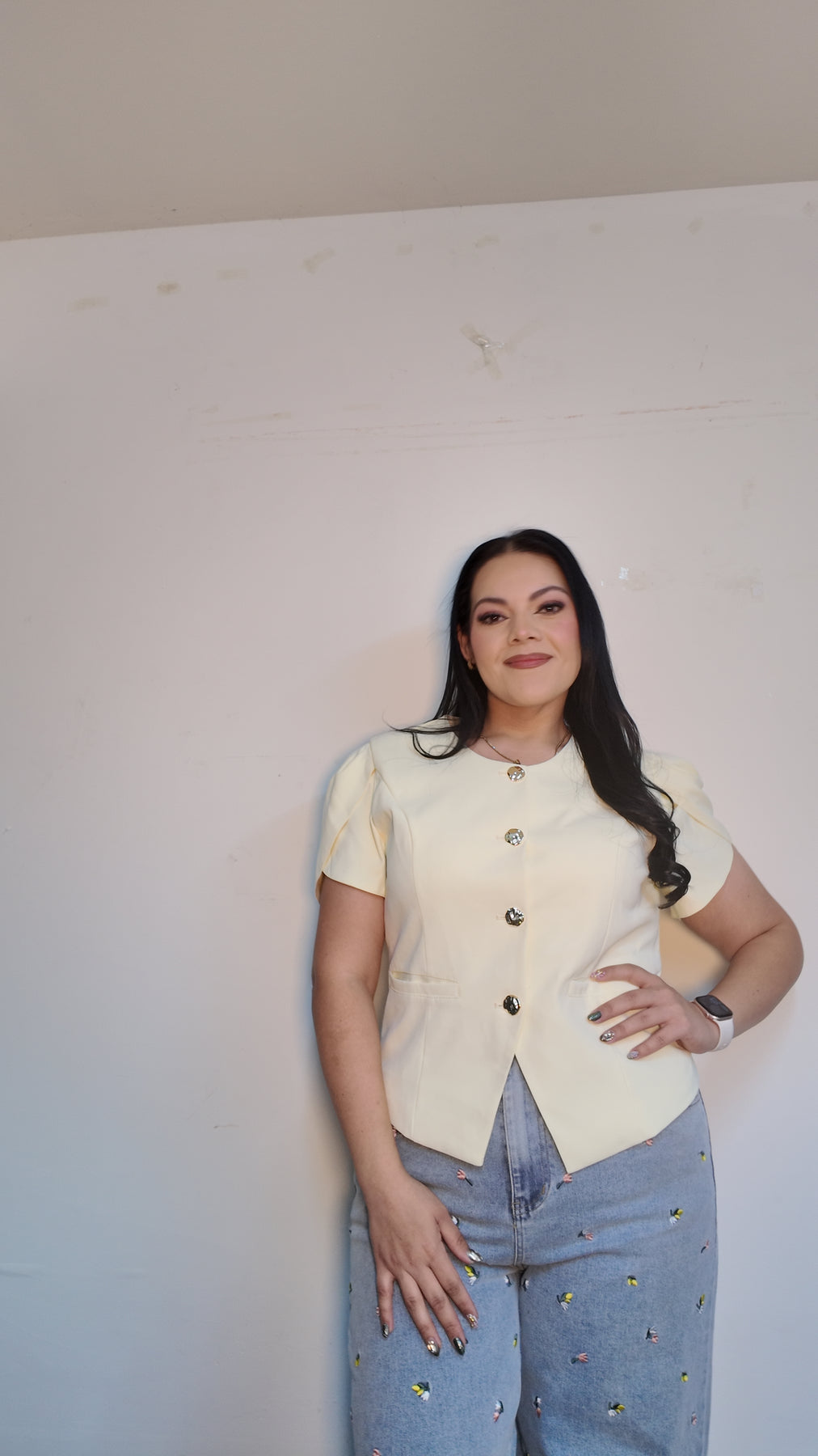 Blusa estilo camisera con bolsas al frente tela cómoda diseño de manga corta la hace fresca y cómoda con botones dorados al frenre ideal para cualquier temporada.