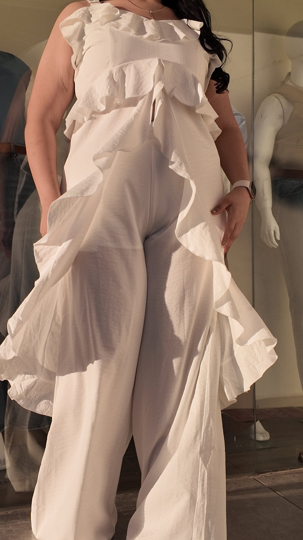 Set de tela holgada y fresca blusa larga con tirantes y detalle de holandés aporta un toque femenino y delicado, creando un movimiento ligero y favorecedor.