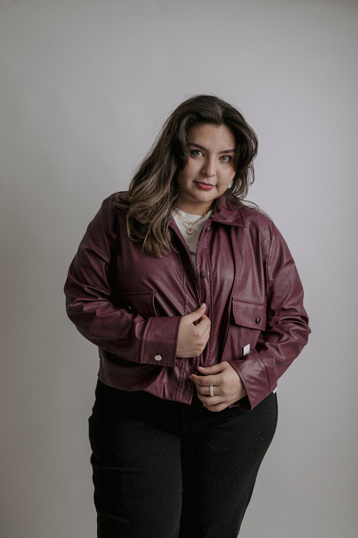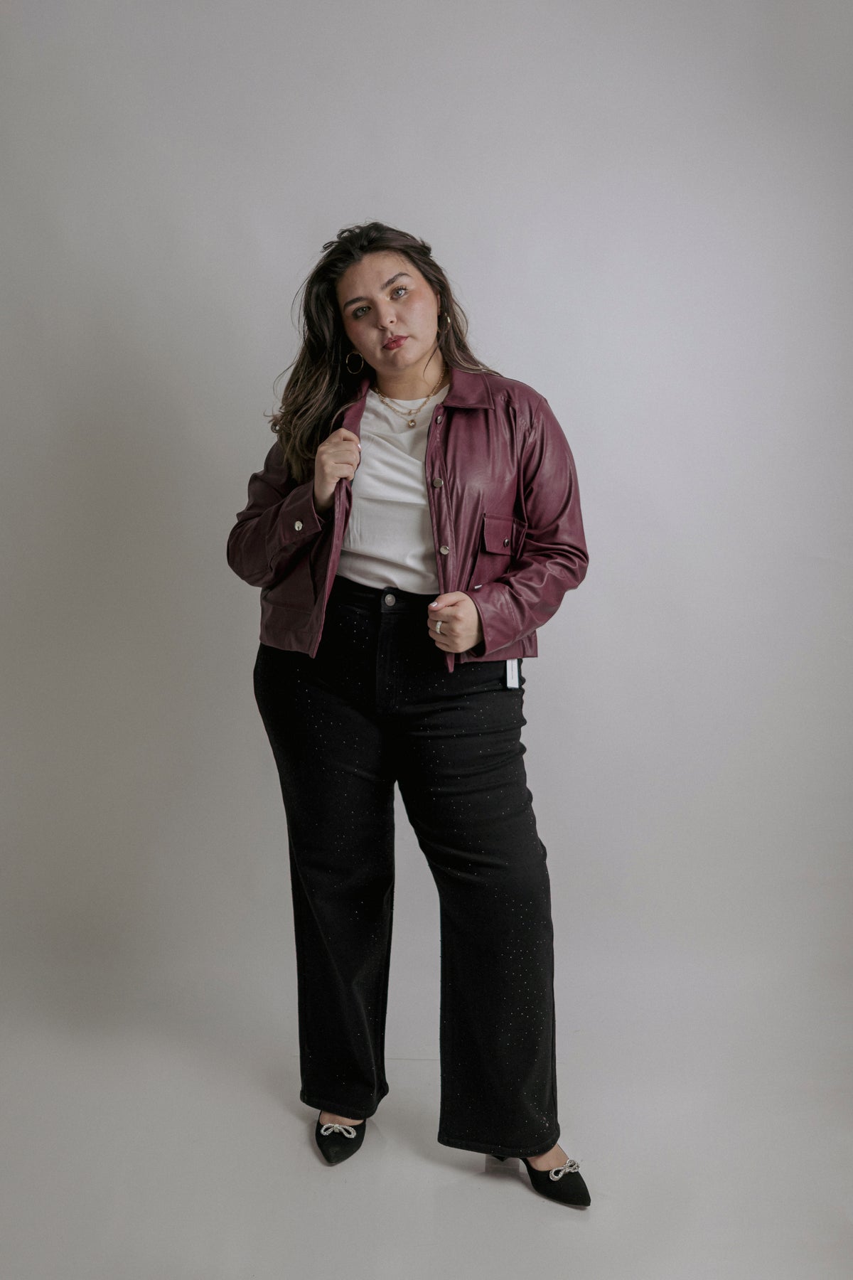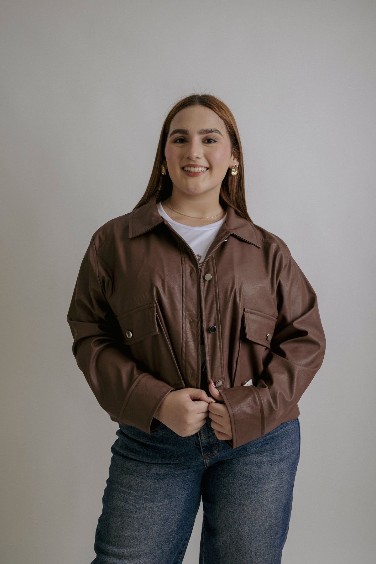 Chamarra en piel. Botones de metal al frente y en los puños. Canesú al frente y en la espalda. Bolsillos frontales con solapa. Una prenda ideal para lucir unos SÚPER OUTFITS este otoño-invierno.