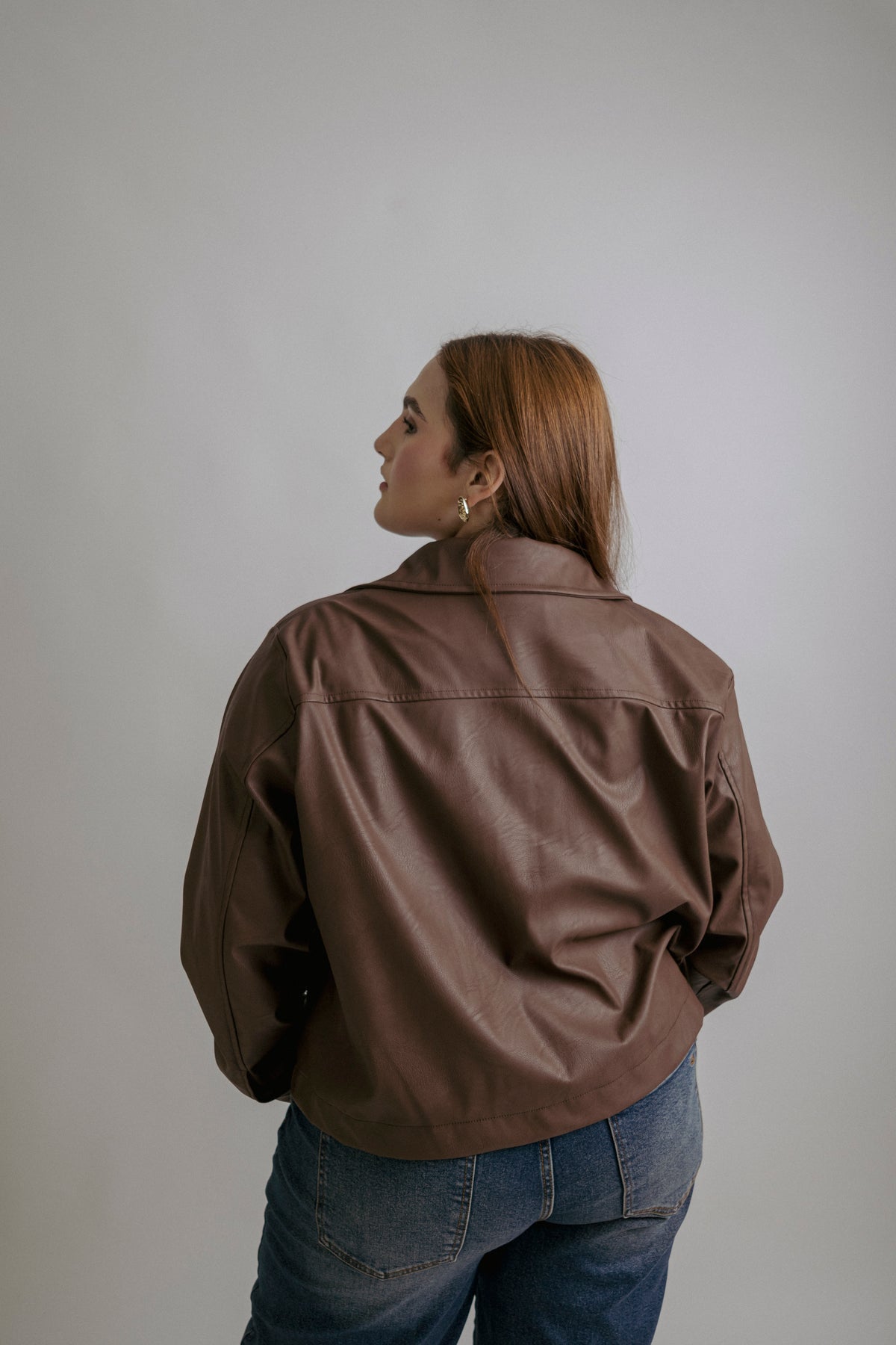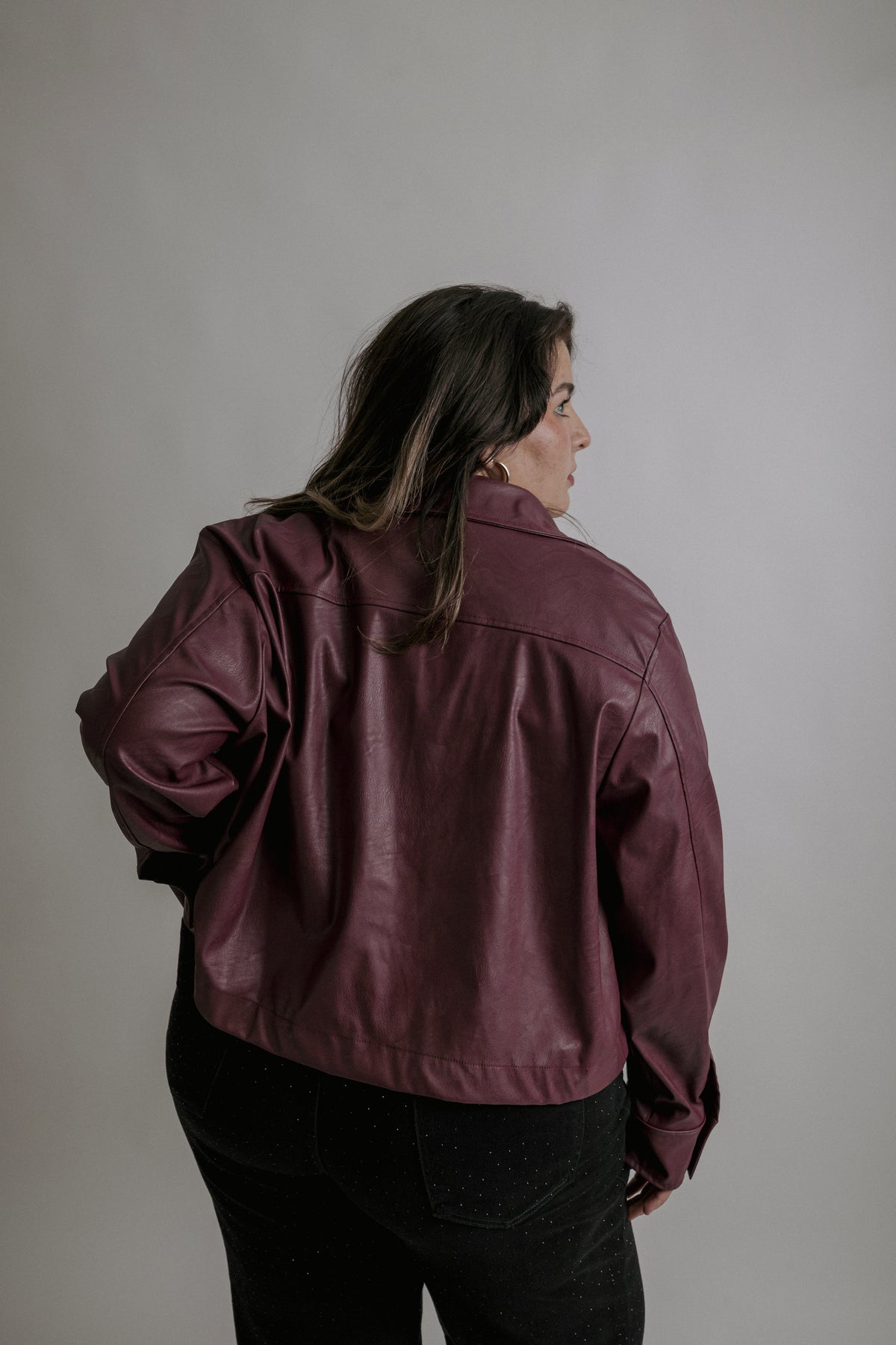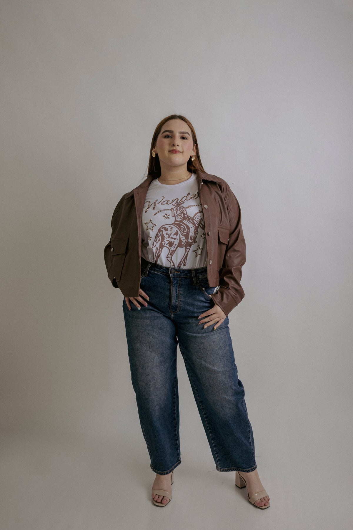 Chamarra en piel. Botones de metal al frente y en los puños color plata. Canesú al frente y en la espalda. Bolsillos frontales con solapa. Una prenda ideal para lucir unos SÚPER OUTFITS este otoño-invierno.