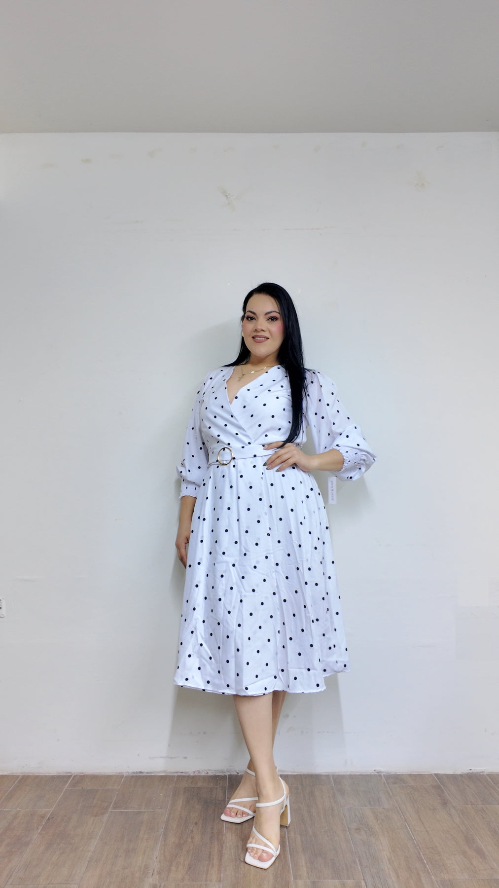 Vestido midi con lazo , modelo manga 3/4 , cuello mao clasico , estilo de vestido voladito INCLUYE LAZO AJUSTABLE ideal para lucir fresca, cómoda y al mismo tiempo ESPECTACULAR.